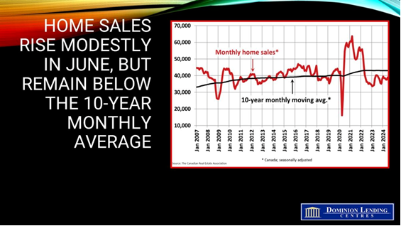 The Canadian Real Estate Association (CREA) announced today that national home sales rose 3.7% between May and June following the Bank of Canada's rate cut. While activity was still muted, it wasn't nearly as weak as the media recently portrayed.